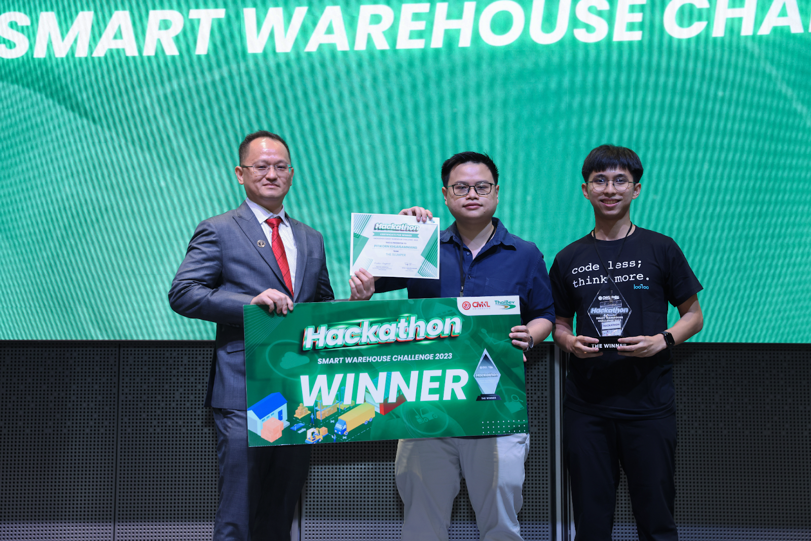 The top three winning teams of Hackathon SmartWarehouse Challenge, with innovative solutions addressing real-world challenges, were celebrated: Third Place NatsuFest, Second Place SAIG-CE, and First Place The Slumper.