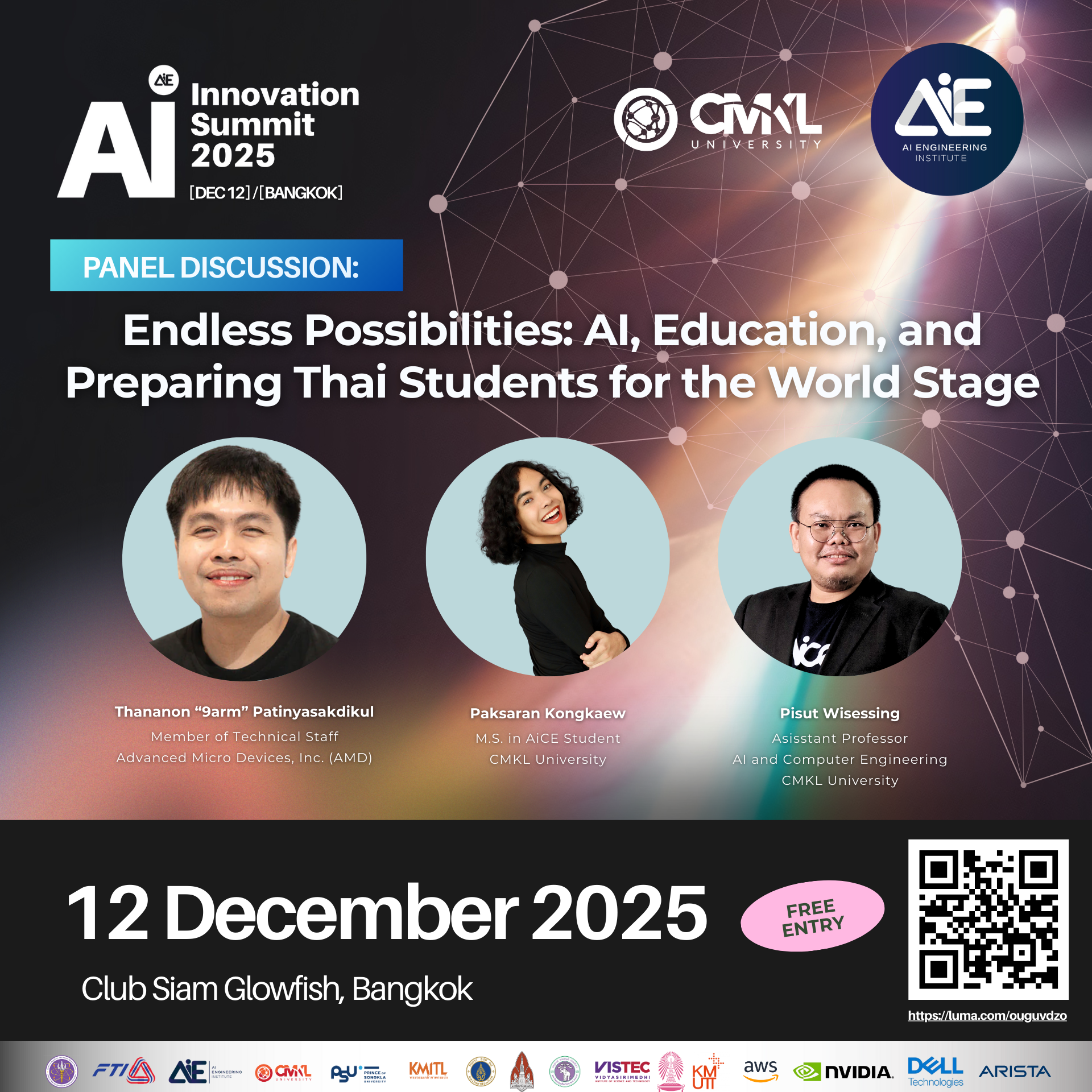 Featuring Thananon “9arm” Patinyasakdikul – a leading Thai computer engineer and tech creator – alongside CMKL students and faculty, this session explores how Thai learners can shift from simply using technology to designing and building it for the world.