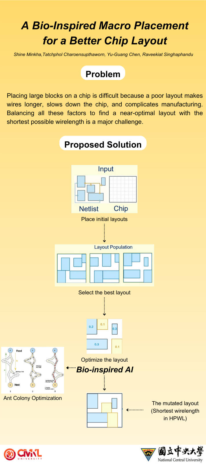 This project focuses on optimizing macro placement in VLSI physical design to improve overall chip performance. The primary goal is to reduce Half-Perimeter Wirelength (HPWL), while also considering secondary metrics such as routing congestion, timing, and area utilization. By developing and evaluating placement strategies, the project aims to enhance wirelength efficiency and placement quality for large-scale integrated circuits.