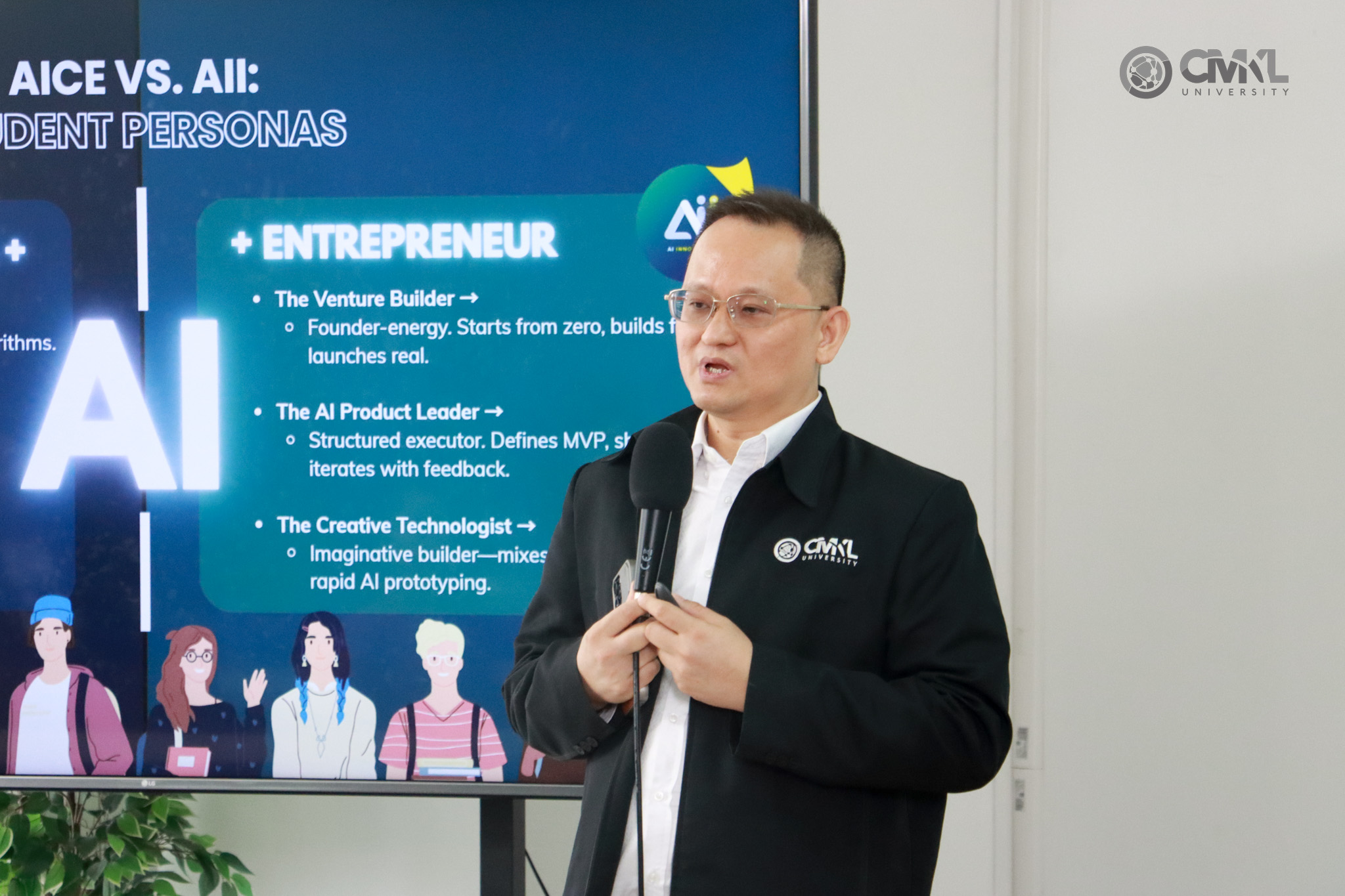 The event featured a panel discussion led by our faculty Tianwei Jing and Suppawat Rattanalaor (Gluy), a freshman AiCE student, followed by an engaging Q&A that opened up meaningful conversations around industry transformation and future collaboration.