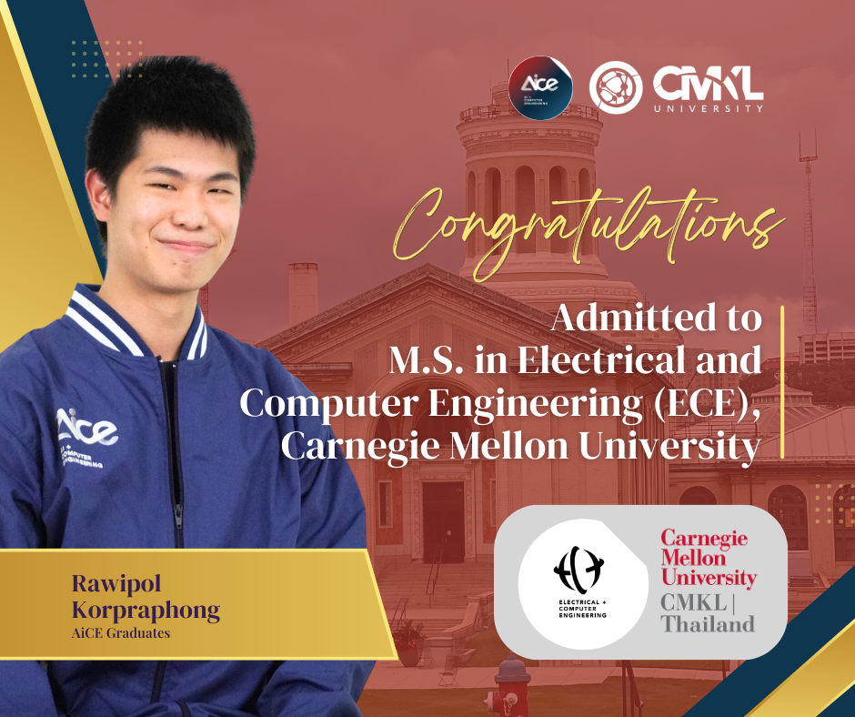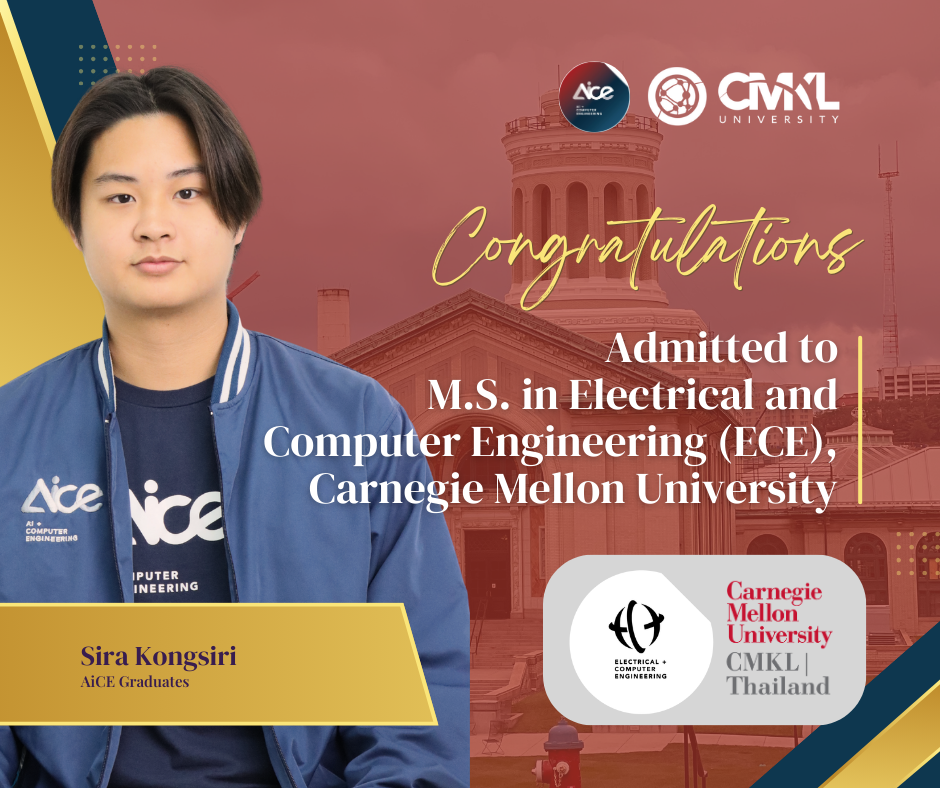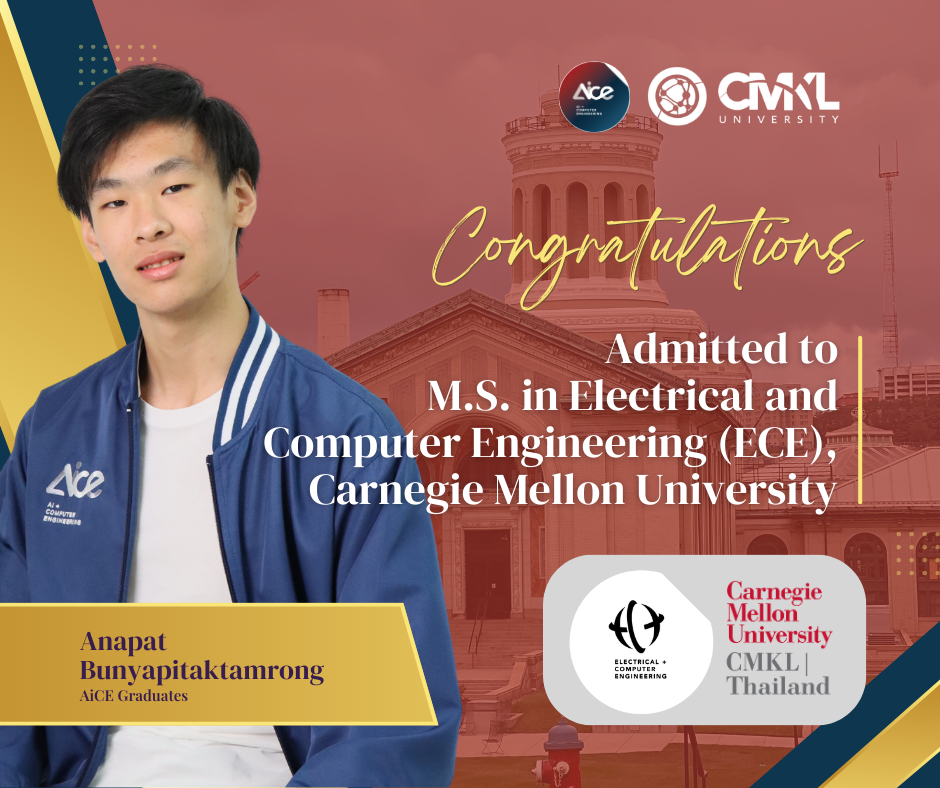 Our AiCE students have received offers for the prestigious Carnegie Mellon - CMKL | Thailand Dual Degree programs in Electrical and Computer Engineering (ECE) for the Fall 2026 intake: